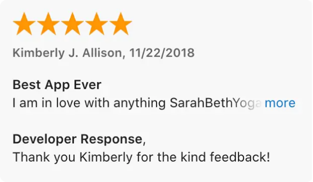 After you sign up, you’ll receive a welcome email with your log in credentials, access links and everything you need to know about your account. Once you sign up, you will have access to the SarahBethYoga Membership + APP content immediately. You can sign in using your log in credentials on the members site at members.sarahbethyoga.com and also within all of the SarahBethYoga apps on iOS, Android, AppleTV, AndroidTV, Roku, and FireTV, browse the content, join the SBY Community and start your first class!