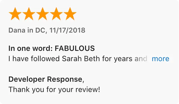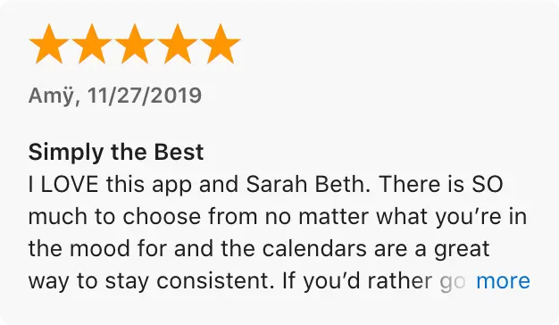 "So thankful for finding Sarah Beth's YouTube channel and grateful I made the decision to invest in the app and myself" - Meghan