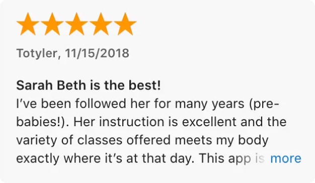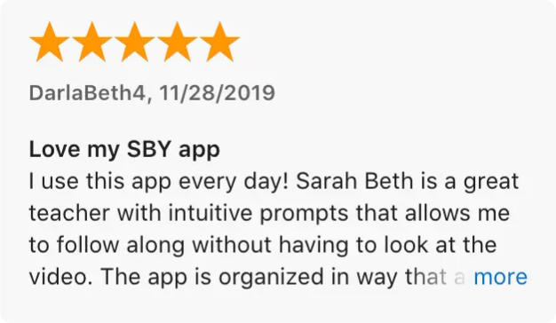 If you’re pregnant, postpartum, diabetic, have a medical condition, an injury or a physical disability, please consult your doctor or professional healthcare provider before starting the SarahBethYoga Membership + APP.