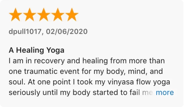 - Monthly LIVE Yoga Classes where we can connect directly in real time. I include ample time for Q&A on specific poses we’re working with or anything else you’d like feedback with.