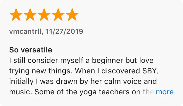 - 1000+ SBY Yoga Videos, Classes, Calendars & Programs ad-free and downloadable for off-line viewing. You can create your own playlists and keep track of your favorites too!
