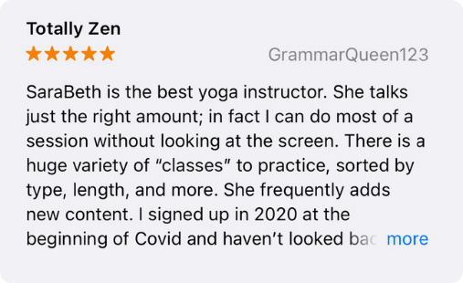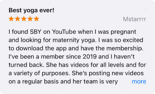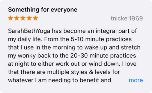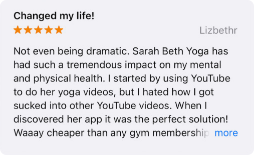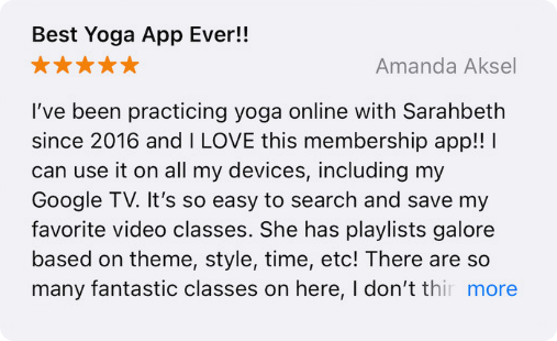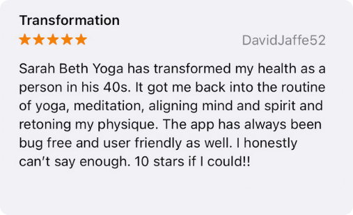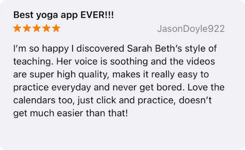 Thousands of people across the globe consider SarahBethYoga the best yoga app out there. Here’s what just a few of our community members have shared about transforming their yoga practice with the app: