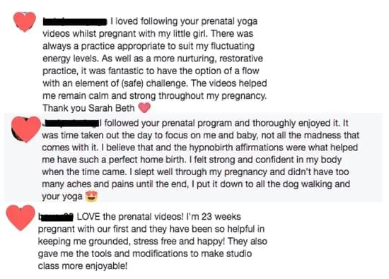The log in you receive upon signing up gets you access in the SarahBethYoga Membership portal at members.sarahbethyoga.com and all of the SarahBethYoga Apps on mobile, tablet and smart TVs  including iOS, Android, AppleTV, AndroidTV, AmazonFireTV. You will get unlimited access to the entire Prenatal Yoga Program, the Prenatal Bonus pack of 7 additional yoga videos. The postnatal series, the TONE Yoga Program for after the Postnatal series and the entire SarahBethYoga library of 400+ yoga videos including exclusive content like member only videos, full length classes, calendars, challenges and programs. In addition, you will be a member of our supportive & thriving private community Facebook group called SBY Tribe. We're so excited to meet you and support you on this incredible journey!